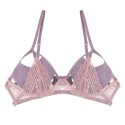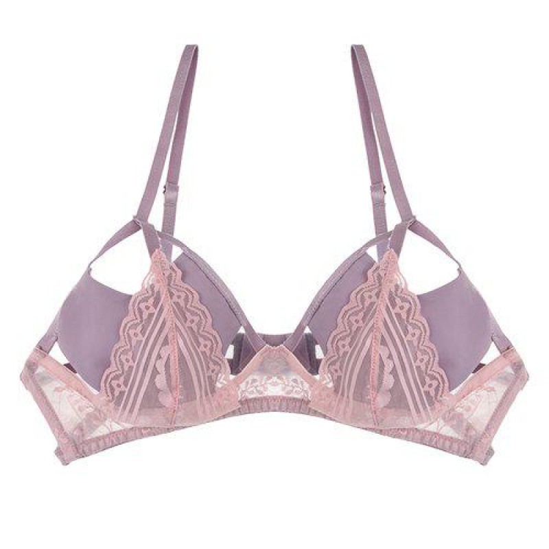 【DesignerWomenwear】AURORAALBA/AuroraAlba2019夏季WATER LILY睡莲-丁香紫随型裁拼接藕粉色三角杯镂空软杯内衣