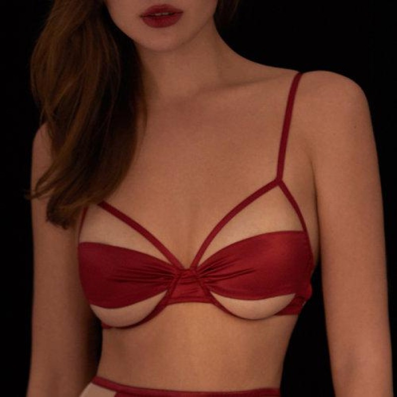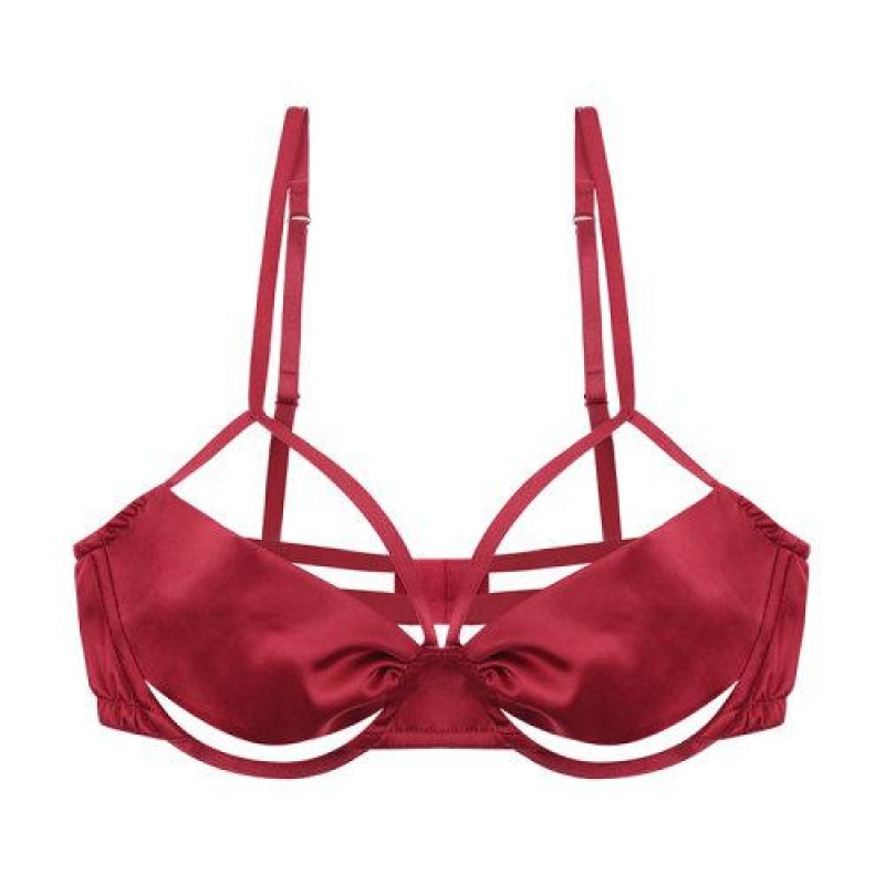【DesignerWomenwear】AURORAALBA/AuroraAlba情人节限定款宝石红缎面色丁蝴蝶结镂空3/4杯内衣(预售14天)