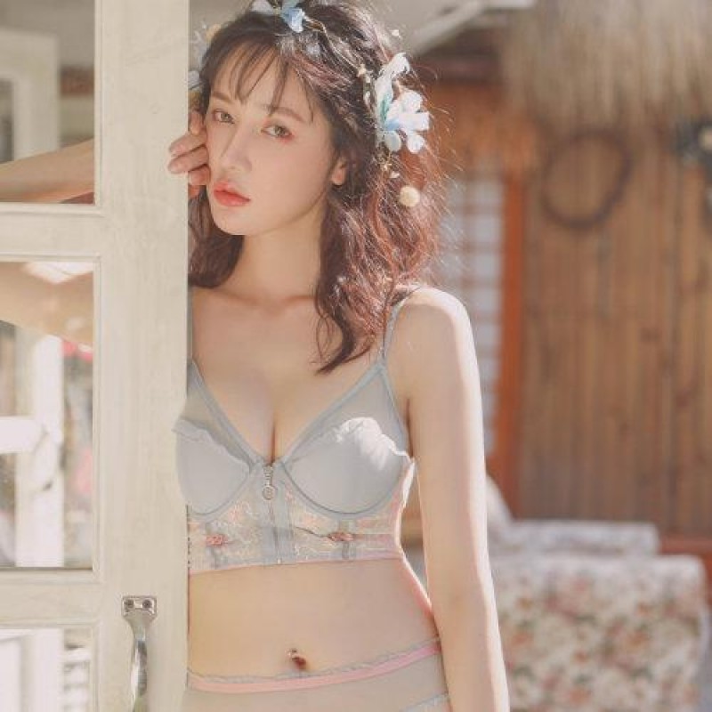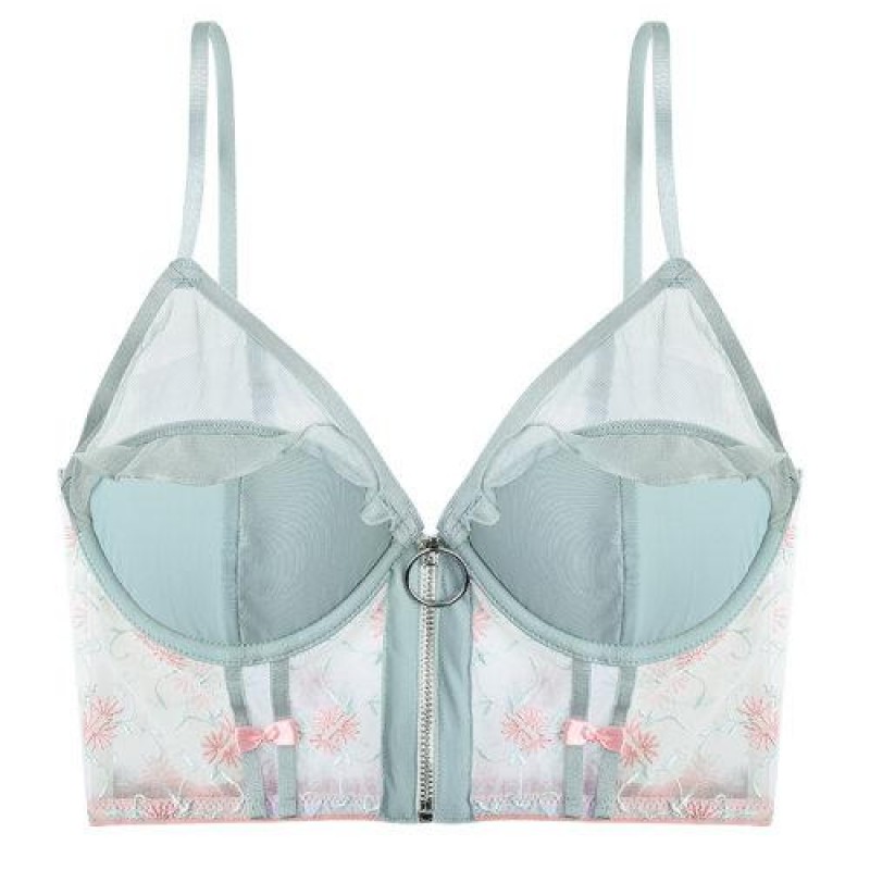 AURORAALBA/AuroraAlba in Garden粉蓝小雏菊刺绣蕾丝复古钢圈内衣小背心
