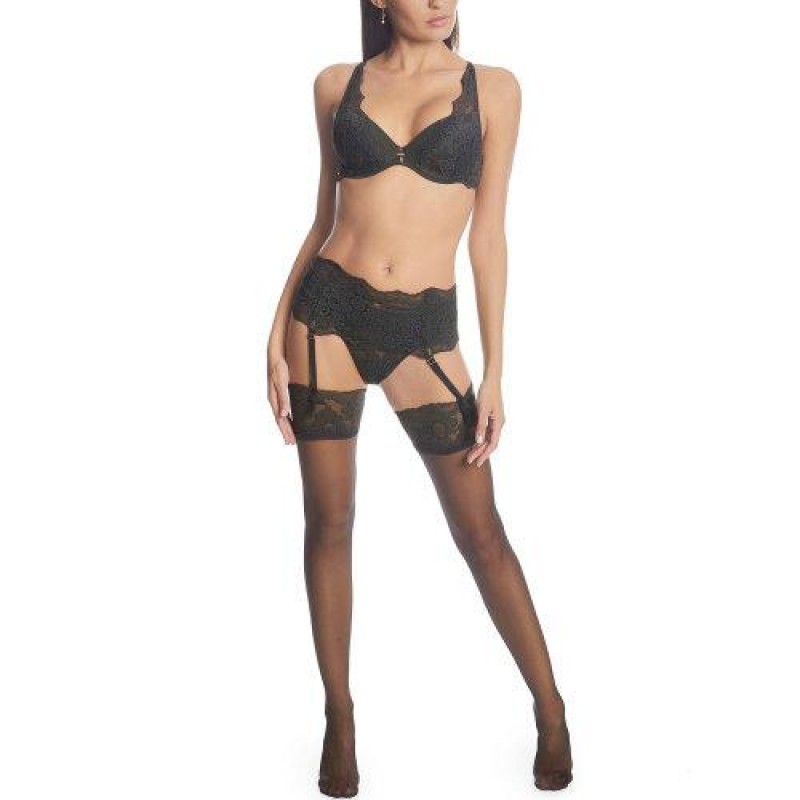 SELMARK/赛马可 欧洲进口文胸内裤吊带丝袜性感4件套 女士内衣套装60713010989