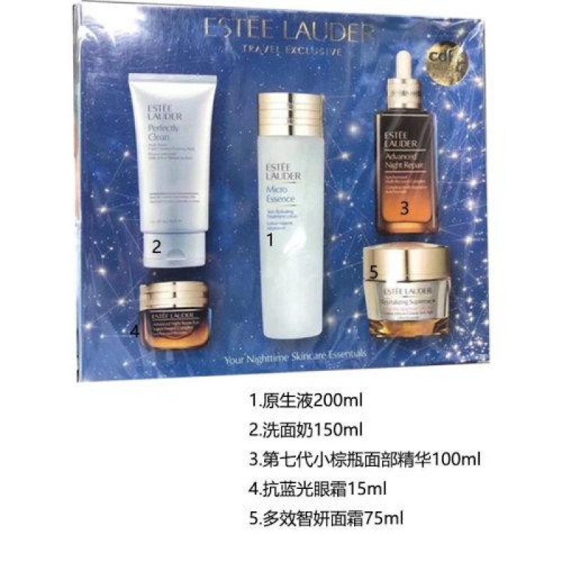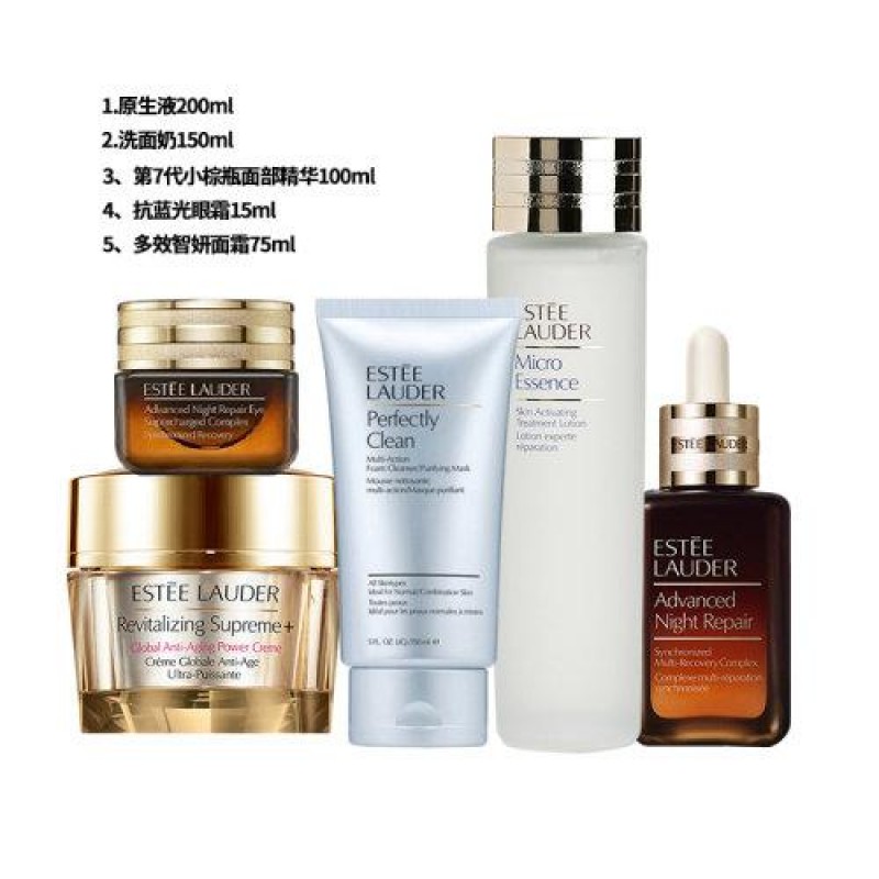 Estee Lauder/Estee Lauder anti-aging five piece set (original liquid 200ml+facial cleanser 150ml+seventh generation small brown bottle facial essence 100ml+anti blue light eye cream 15ml+multi effect intelligent beauty face cream 75ml)