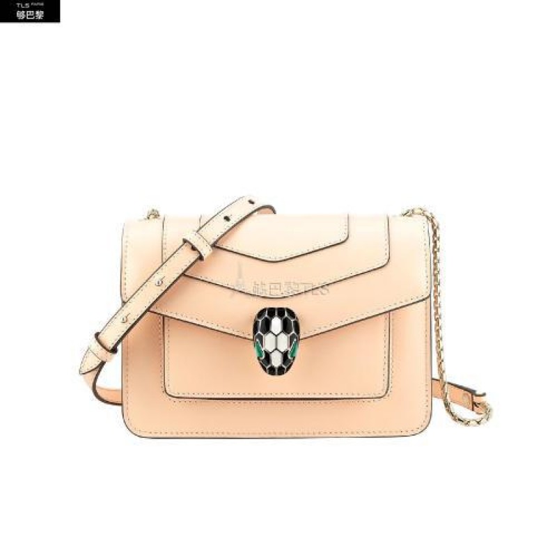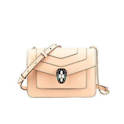 Ideal pour un look urbain, tendance et polyvalent, le nouveau sac a bandouliere Serpenti Forever confere une touche moderne a la collection Serpenti. Confectionne en cuir de veau couleur peche, ce modele est rehausse de details en laiton dore. Le fermoir emblematique Serpenti en email noir et couleur blanc Agate hypnotise avec ses yeux en malachite au cha*W*rme envoutant. Accessoire ideal d’un look de jour tendance, le sac se pare d’une chaine ondulee en forme de serpent ajustable et d’une bandouliere en cuir. Petit modele dote de deux compartiments et d’un petit miroir personnalisable. Un etui pour cartes de credit non amovible, une poche ouverte, une poche a fermeture eclair et deux poches exterieures completent l’ensemble. Dimensions : 19 x 13 x 7 cm.