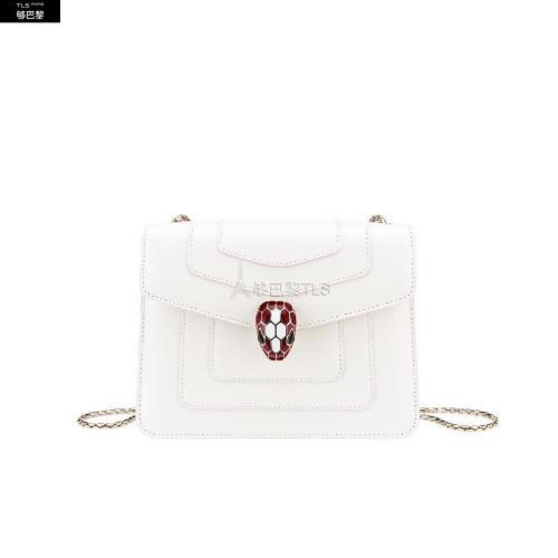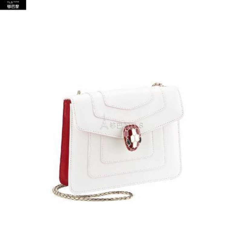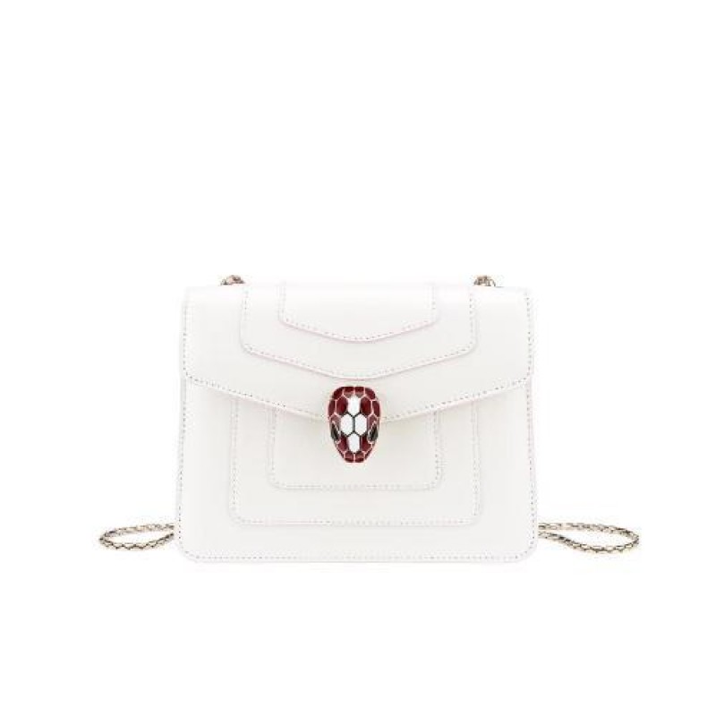 Le sac a bandouliere Serpenti Forever revet de nouvelles couleurs pour la saison. Ce modele avec corps en cuir de veau lisse couleur blanc agate et cotes en cuir de veau lisse couleur rouge rubis est rehausse de details en laiton dore. Le fermoir emblematique Serpenti en email couleur rouge rubis et blanc agate hypnotise avec ses yeux en onyx au cha*W*rme envoutant. Une chaine en laiton dore, inspiree par l’allure sinueuse du serpent, et un petit miroir de poche completent l’ensemble. Petit modele dote d’un compartiment a soufflet. Dimensions : 20 x 14 x 4,5 cm.