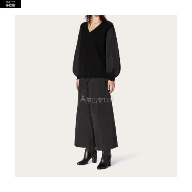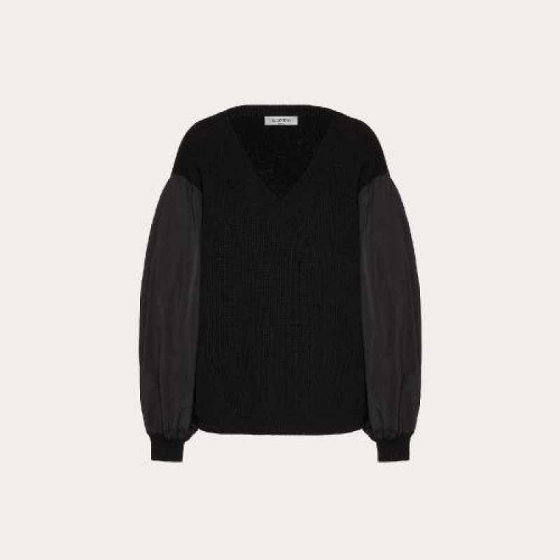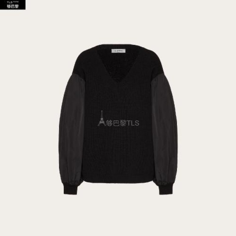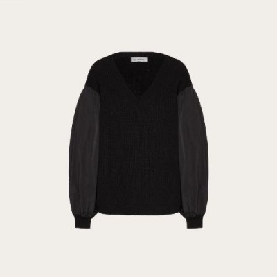 【包邮包税】 VALENTINO华伦天奴 21年春夏 女士 针织衫 羊绒羊毛和细罗缎卫衣 TB3KC10E59G0NO 预定商品1-3周发货