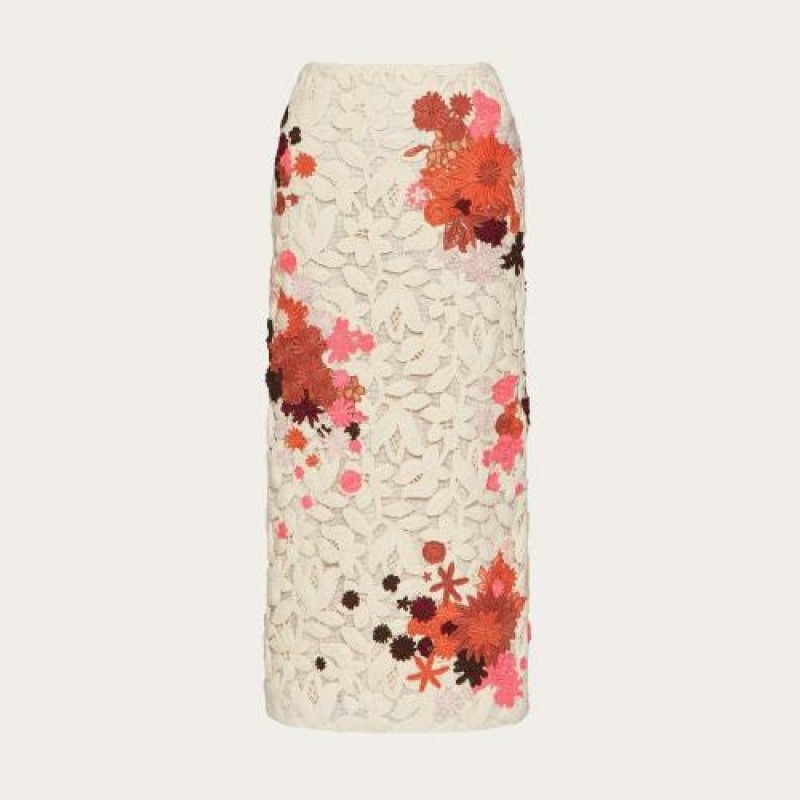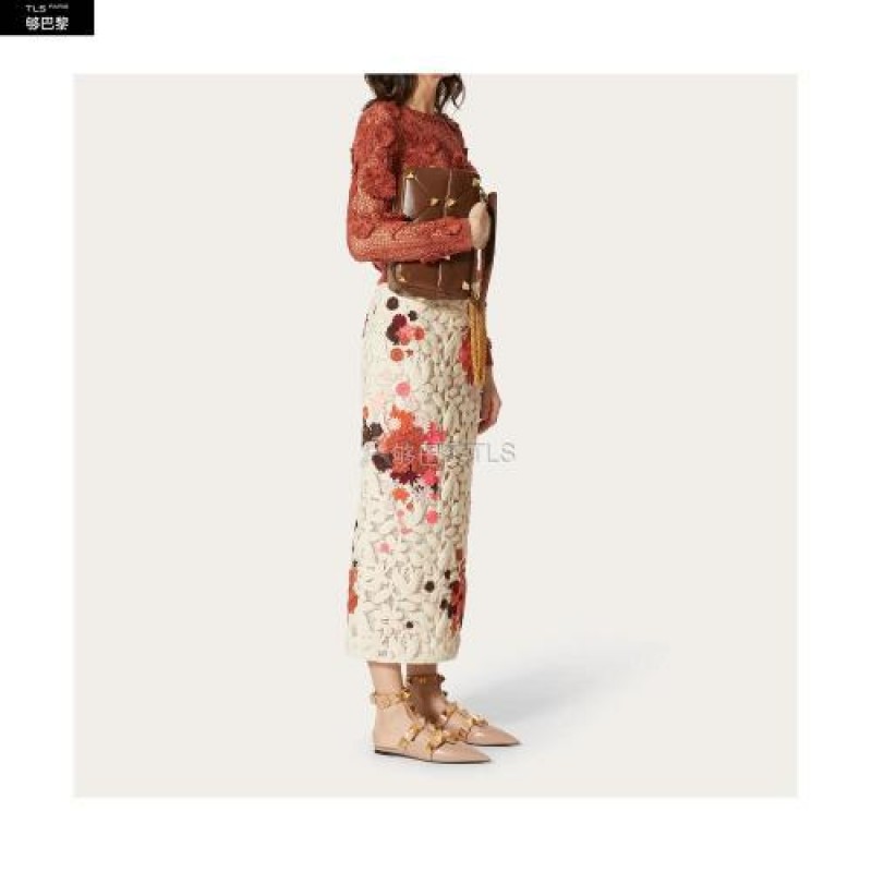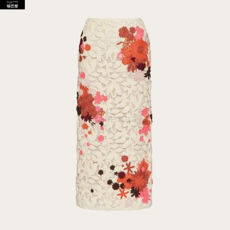 【包邮包税】 VALENTINO华伦天奴 21年春夏 女士 半身裙 JUPE EN SOUTACHE DE COTON BRODéE VB0RA7L76B4AK1 预定商品1-3周发货