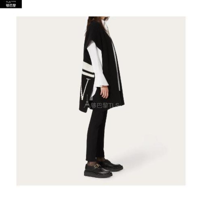 【包邮包税】 VALENTINO华伦天奴 21年春夏 女士 针织衫 VLTN 嵌花编织羊毛斗篷 UB3KSA055TK0NA 预定商品1-3周发货