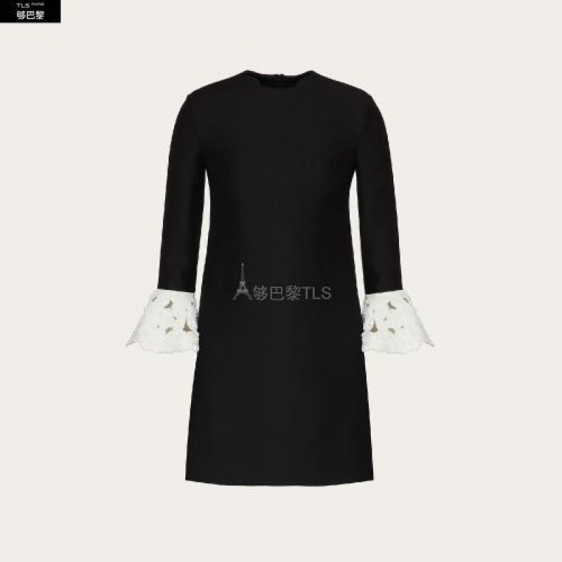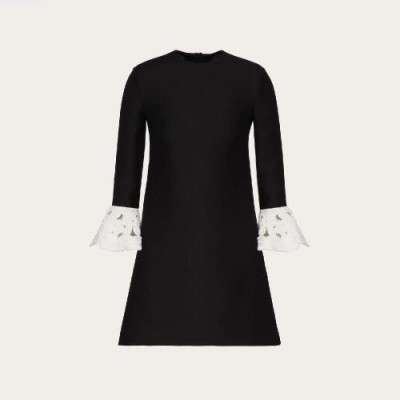 • 【包邮包税】 VALENTINO华伦天奴 21年春夏 女士 连衣裙 刺绣 Crepe Couture 短款连衣裙 UB3VASR01CF0NI 预定商品1-3周发货