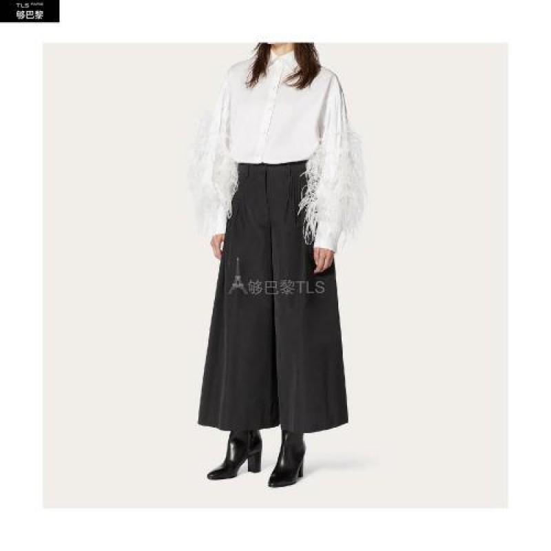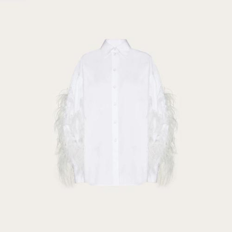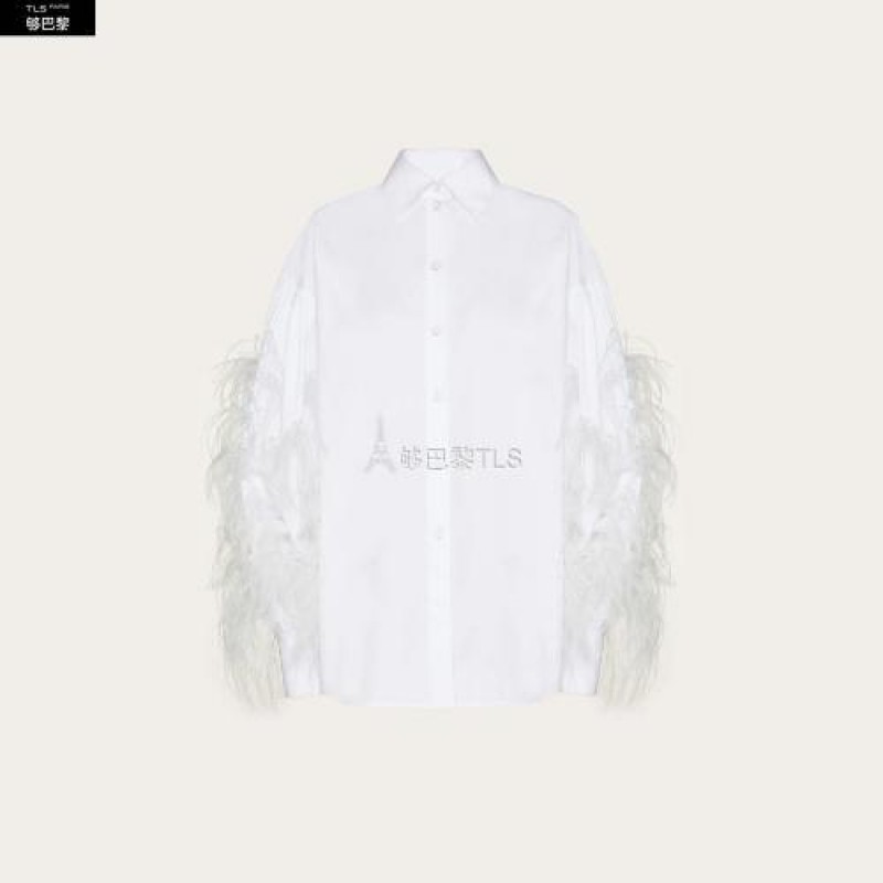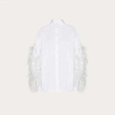 【包邮包税】 VALENTINO华伦天奴 21年春夏 女士 长袖衬衫 CHEMISE EN POPELINE BRODéE DE PLUMES TB3AB15M 预定商品1-3周发货